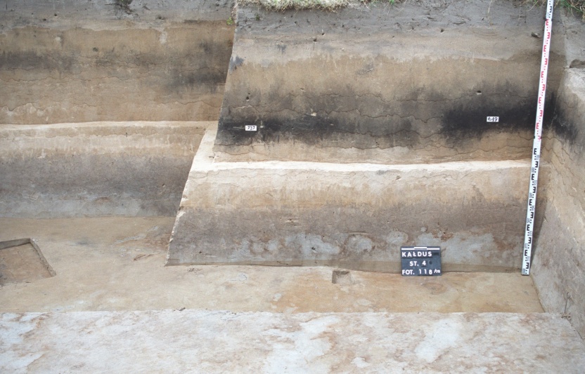 Kolejne stanowisko, na którym odkryto groby szkieletowe, znajduje się w obrębie południowej partii kompleksu osadniczego w Kałdusie (stanowisko 4). Ta część terenu ograniczona jest od południa poprzecznym rozcięciem erozyjnym o długości ponad 150 m, wypłycającym się w kierunku wschodnim. Na granicy dolinki znajduje się podłużna wydma, której kulminacja wznosi się ponad otaczający teren 2,5–3 m (Szmańda, Luc, Lankauf 2004, s. 24–25; Bednarek i in. 2004, s. 190–192). Powierzchnia stanowiska została sztucznie zniwelowana, tak że zatarła się jej pierwotna forma. Od północy części występuje szerokie obniżenie o głębokości 1–1,5 m, oddzielające w sposób naturalny to stanowisko od położonych w sąsiedztwie stanowisk 1 i 2.